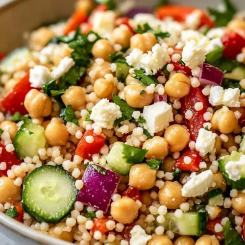Leftover salad can be stored in an airtight container in the fridge for up to three days. If you plan to store it, consider keeping the dressing separate until you’re ready to eat to maintain freshness. For variations, try adding roasted vegetables, nuts, or your favorite herbs like mint or basil for a twist. You can also substitute the couscous with quinoa for a gluten-free option or use farro for a nuttier flavor.