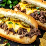 Mississippi Pot Roast Sandwiches are a flavorful, satisfying dish that combines tender, shredded beef with a delightful blend of seasonings and toppings, all nestled inside a soft, warm roll.