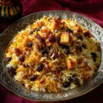 Persian Jeweled Rice is not just delicious; it’s also packed with essential nutrients. Each serving is rich in fiber from the dried fruits and nuts, offering a healthy source of energy. While the calorie count can vary based on portion size and additional ingredients, a typical serving contains around 450-600 calories. Enjoy it as an indulgent yet wholesome fare, loaded with beneficial nutrients.